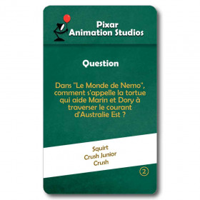 Jeu de cartes qui vient compléter les cartes de base du Jeu de labyrinthe Rotam. Cette série a pour thème les questions sur les dessins animés Pixar.